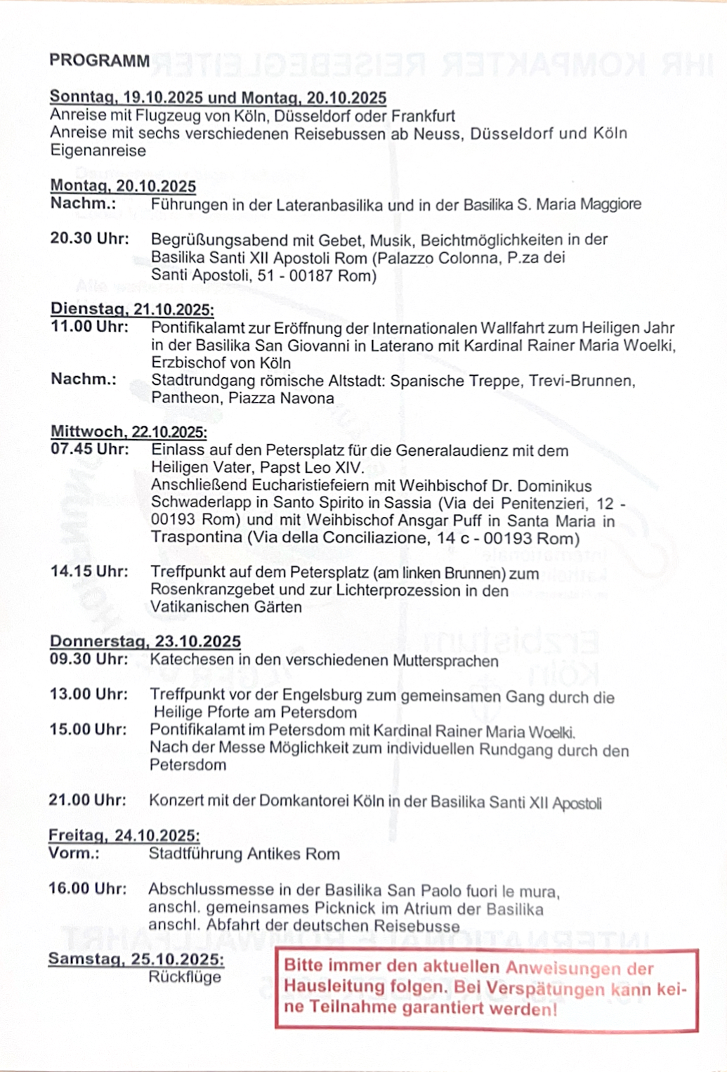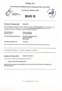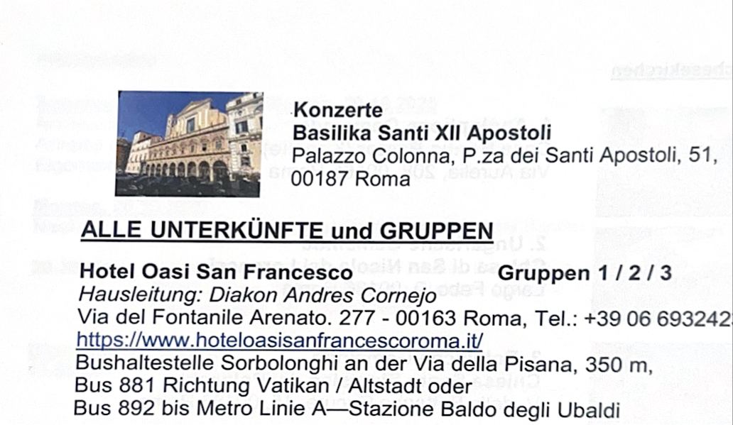 Program hodočašća, adresa smještaja u Rimu i ostale informacije, nalaze se ovdje u obliku fotografije.