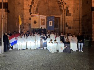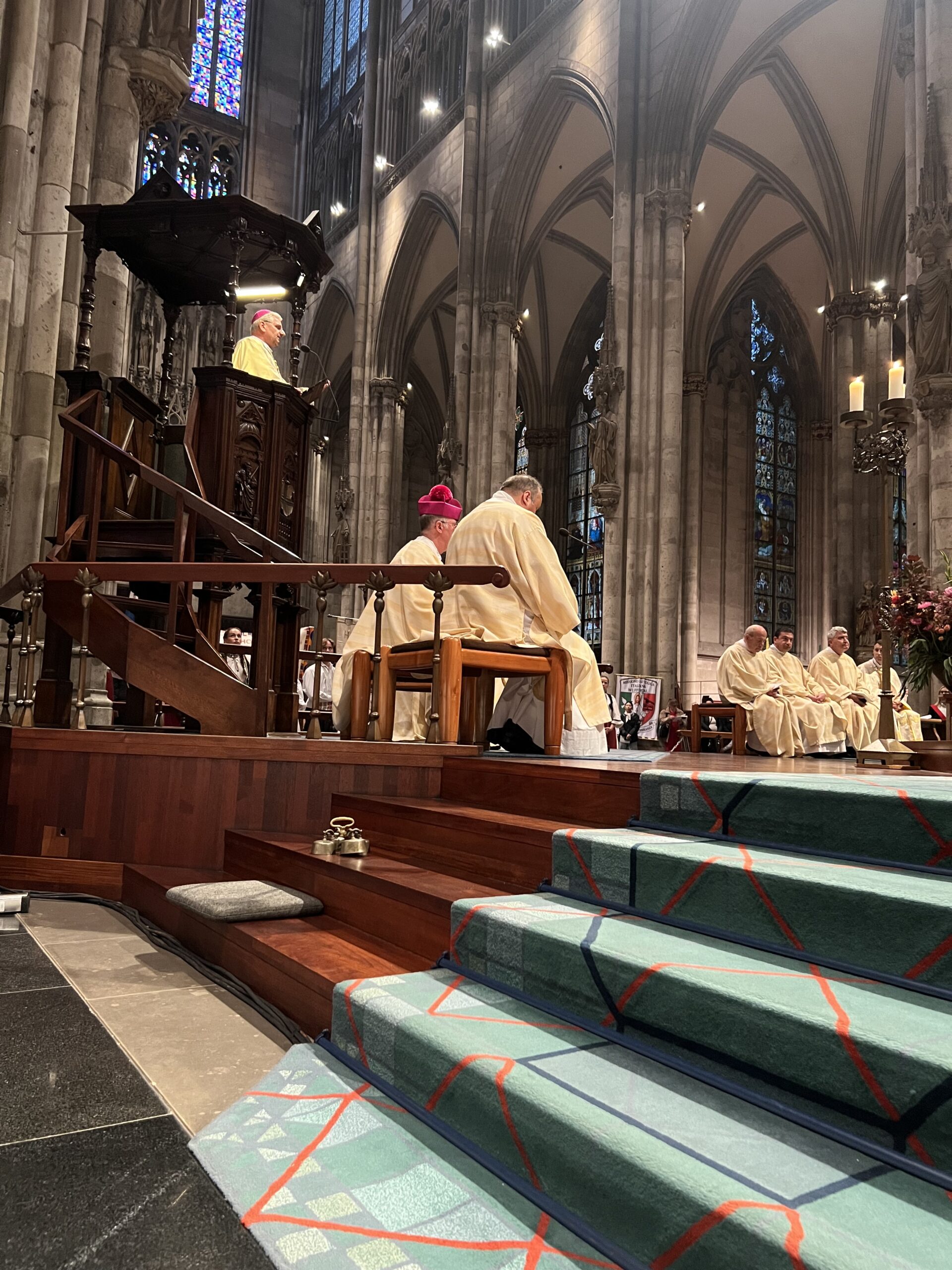 U prigodnoj homiliji više je puta podsjetio da je Crkva jedna obitelj te da je različitost jezika, kultura i tradicija čini bogatijom i izvornijom u svom ispovijedanju vjere u Isusa Krista. Osvrnuvši se na evanđeoski ulomak iz Cezareje Filipove i Petrovu ispovijest vjere u Isusa Mesiju, istaknuo je da se upravo na toj vjeri temelji Isusovo predanje papinske službe – onda i danas. Činjenicu da je povijesna cesta spajala Cezareju Filipovu sa središtem kršćanstva, Rimom, povezao je s našom vjerom u Krista koju je ispovjedio Petar, kao i s ovogodišnjim hodočašćem Nadbiskupije Köln koncem listopada u Rim. Na kraju je spomenuo tri važna stava koja trebaju pratiti to vjerničko hodočašće u Rim u Jubilarnoj godini 2025., a to su: radikalna odluka, aktivno očekivanje i neprestani hod u vjeri.