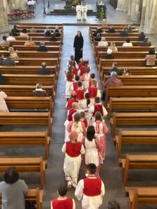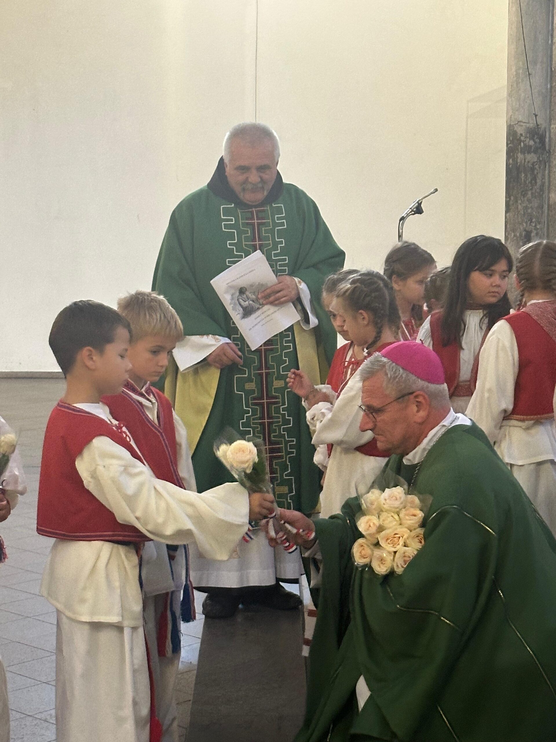 Prije završnog blagoslova biskup je pozvao djecu da pristupe oltaru te im na zanimljiv način objasnio simbole biskupske službe. Slijedilo je zajedničko fotografiranje s djecom, ministrantima i svećenicima.