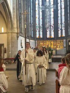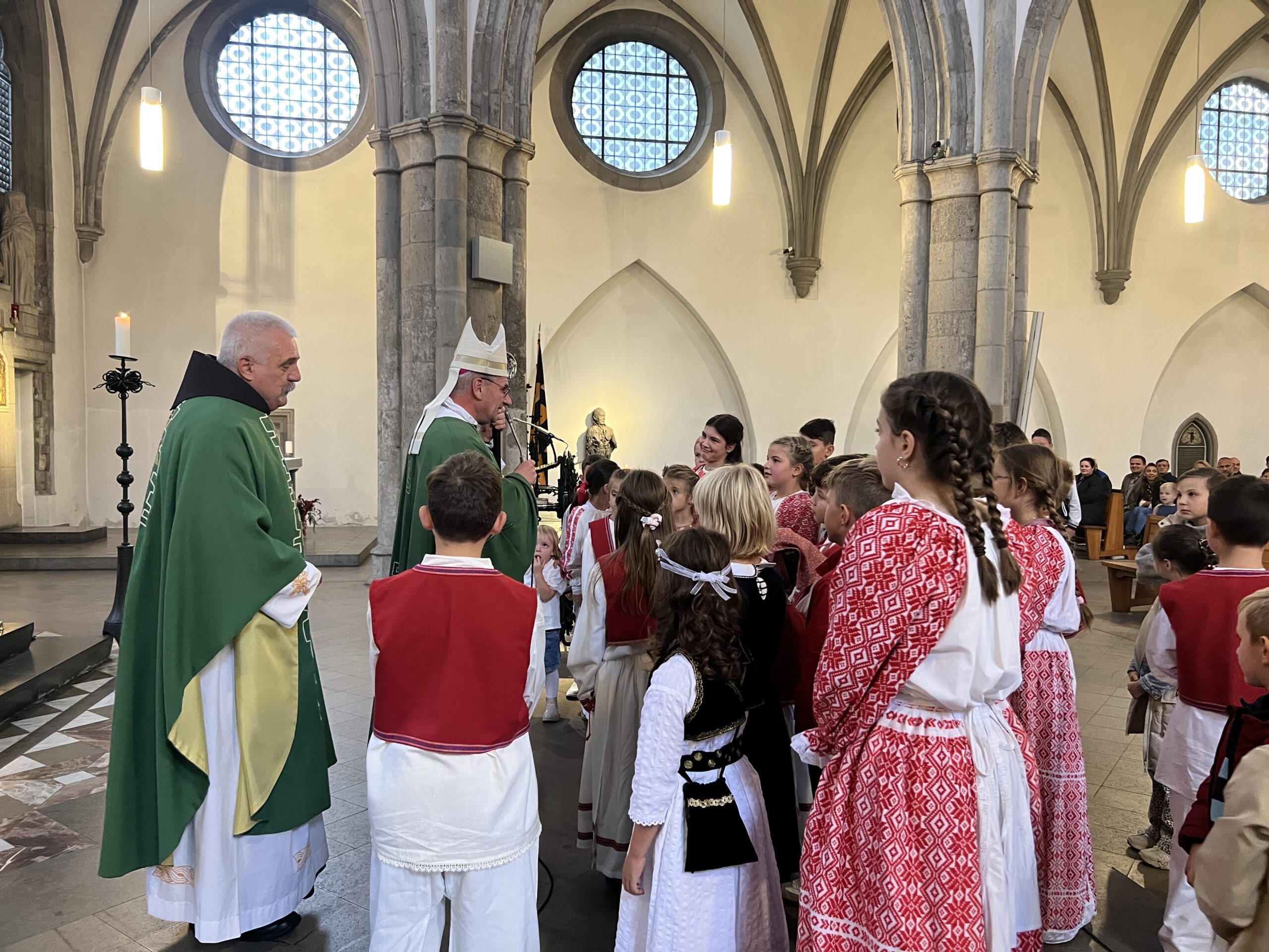 U nedjelju, 5. listopada 2025., Hrvatska katolička misija Köln imala je čast ugostiti pomoćnog biskupa Nadbiskupije Köln, dr. Dominikusa Schwaderlappa, koji je u crkvi Minoritenkirche predvodio svetu misu u 12.30 sati. S njim su koncelebrirali župnik fra Vuk Buljan i župni vikar dr. fra Ivan Režić.