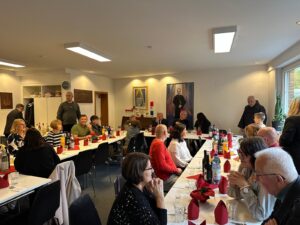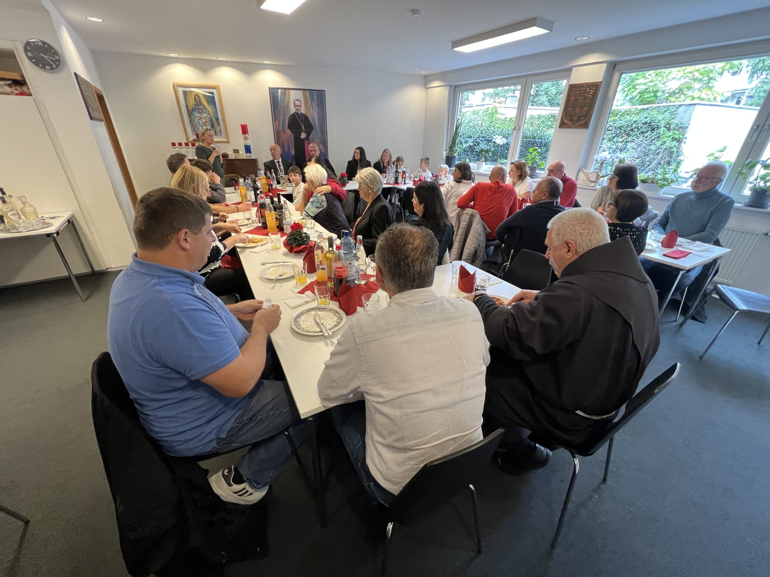 Nakon mise održan je zajednički objed i susret s predstavnicima hrvatskih zajednica iz Kölna, Bonna, Leverkusena, Bergheima i Bielsteina. U otvorenom i srdačnom razgovoru razmijenjena su iskustva i prijedlozi za unaprjeđenje djelovanja Hrvatske katoličke misije Köln. Biskup Schwaderlapp zahvalio je vodstvu i vjernicima HKM-a na gostoprimstvu, potaknuvši ih da nastave hrabro svjedočiti svoju vjeru i biti „misionari i njemačkih zajednica“.