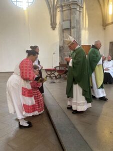 Uz biskupa je na misnom slavlju bio prisutan i nadbiskupijski referent za strance, gosp. Ingbert Mühe. Liturgijsko pjevanje animirao je zbor pod ravnanjem s. Renate Rapi, uz tamburašku pratnju VIS-a Alojzije Stepinac. Darove su prinosili mladi odjeveni u hrvatske narodne nošnje.