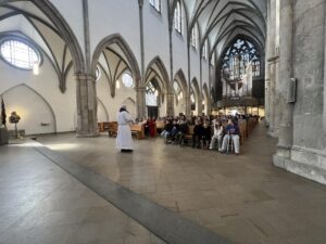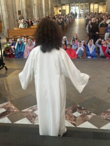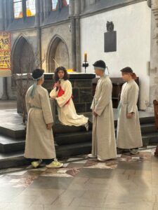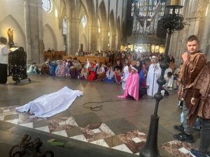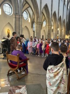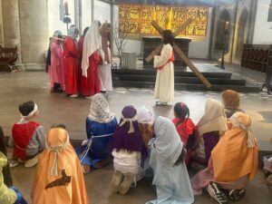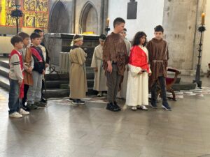 U subotu, 21. ožujka 2026. godine, s početkom u 10 sati, u crkvi Minoritenkirche u Kölnu, umjesto redovite nastave vjeronauka, uprizorena je Posljednja večera i slike muke Kristove. U pobožnosti su sudjelovali vjeroučenici nižih razreda. Tekst je izražajno i meditativno čitala Laura Rajić, predsjednica Frame, dok su djecu za ovaj poseban korizmeni susret pripremale vjeroučiteljice s. Renata Rapi i s. Bora Marki, zu osobitu pomoć župljanki Anite Bilić i Marije Đerek te župljana gosp. Slavka Bočeka i gosp. Damir Križića. Zajedno s njima s. Renata i s. Bora su osmislile i izradile prigodne kostime te kreirale scenografiju. U programu je sudjelovalo pedesetak djece, odjevene u prigodne kostime. Ulogu Isusa već treću godinu zaredom uprizorio je Mario Vrdoljak. Birane slike posljednjih trenutaka iz Isusa ovozemnog života, ispunjene dječjom iskrenošću, jednostavnošću i vjerom, nikoga nisu ostavile ravnodušnim. Osim djece, u pobožnosti i misnom slavlju sudjelovali su njihovi roditelji, bake i djedovi.