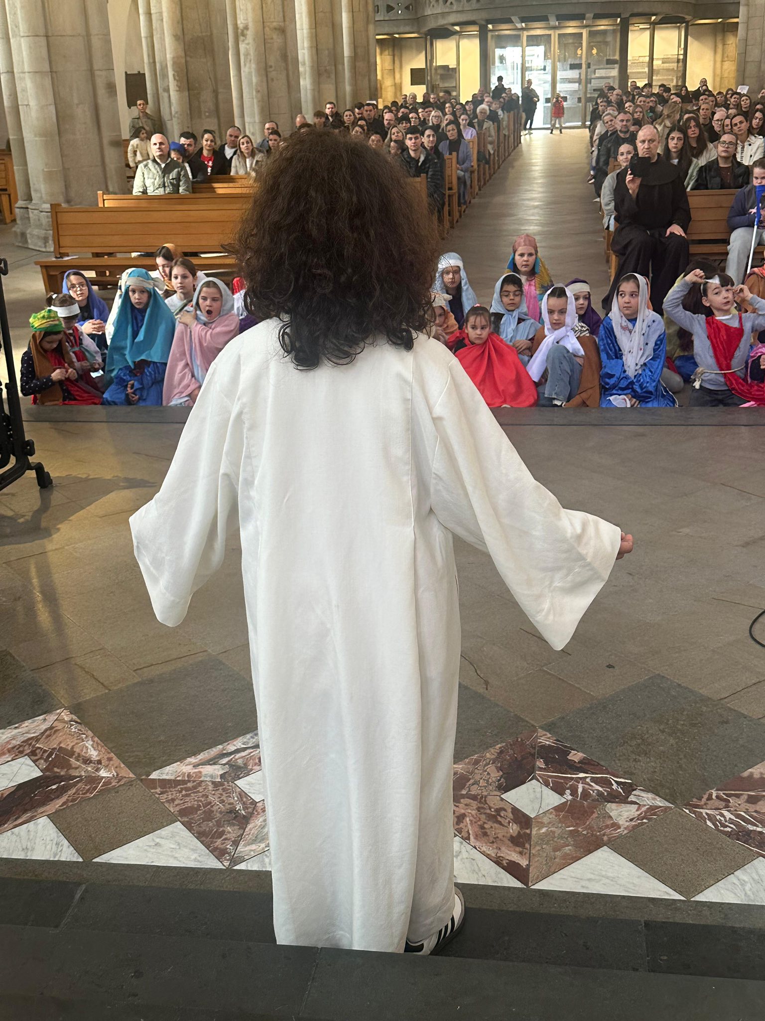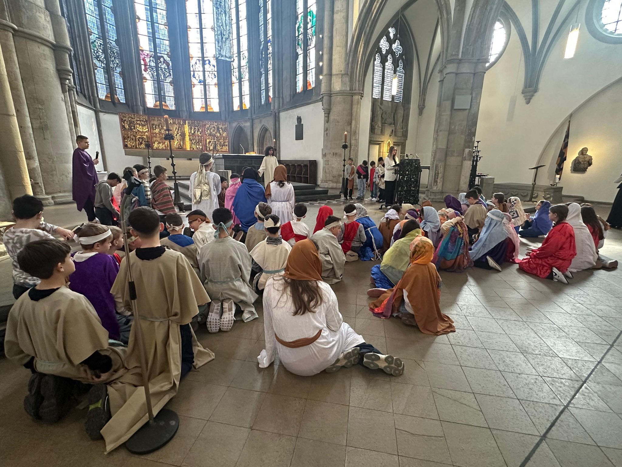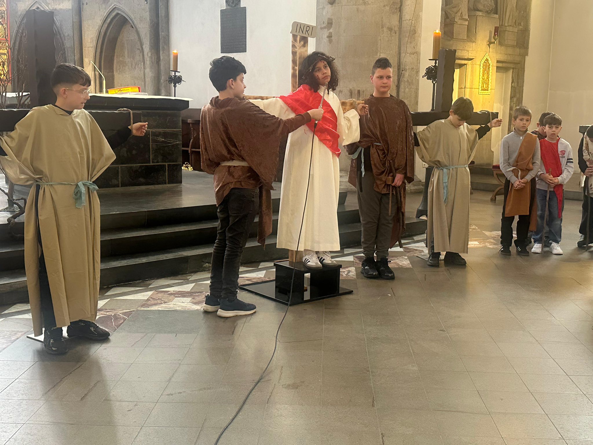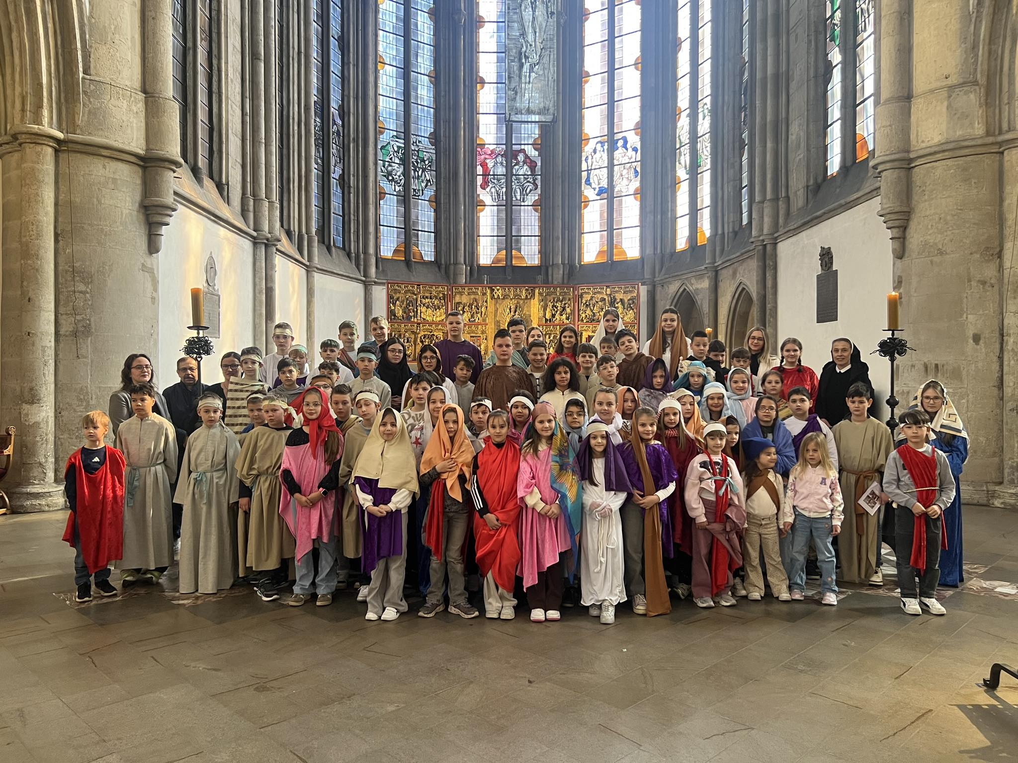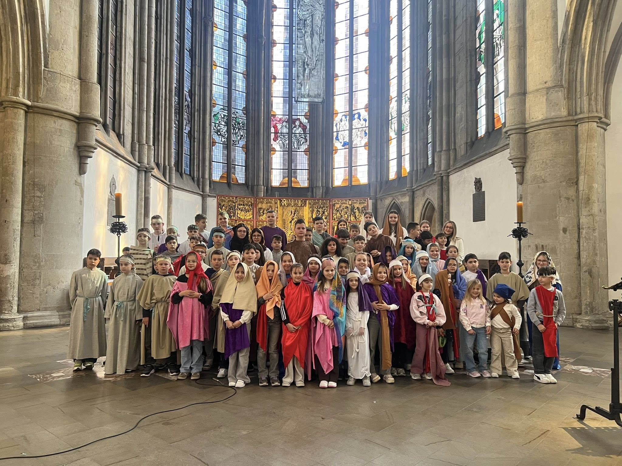 U subotu, 21. ožujka 2026. godine, s početkom u 10 sati, u crkvi Minoritenkirche u Kölnu, umjesto redovite nastave vjeronauka, uprizorena je Posljednja večera i slike muke Kristove. U pobožnosti su sudjelovali vjeroučenici nižih razreda. Tekst je izražajno i meditativno čitala Laura Rajić, predsjednica Frame, dok su djecu za ovaj poseban korizmeni susret pripremale vjeroučiteljice s. Renata Rapi i s. Bora Marki, zu osobitu pomoć župljanki Anite Bilić i Marije Đerek te župljana gosp. Slavka Bočeka i gosp. Damir Križića. Zajedno s njima s. Renata i s. Bora su osmislile i izradile prigodne kostime te kreirale scenografiju. U programu je sudjelovalo pedesetak djece, odjevene u prigodne kostime. Ulogu Isusa već treću godinu zaredom uprizorio je Mario Vrdoljak. Birane slike posljednjih trenutaka iz Isusa ovozemnog života, ispunjene dječjom iskrenošću, jednostavnošću i vjerom, nikoga nisu ostavile ravnodušnim. Osim djece, u pobožnosti i misnom slavlju sudjelovali su njihovi roditelji, bake i djedovi.